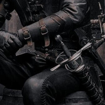Hunts is covered in forest green scales which appear almost black in dim light. Atop his head lie twin fans which are much darker than his scales and run down his head parallel to one another. The Saxhleel has penetrating orange eyes which appear fiery in candlelight. Hunts' body is covered in crimson tattoos in designs unique to his tribe of birth. Likewise, he practices the tradition of his tribe in painting red markings around his eyes and downwards from his bottom lip to the edge of his jawline.For an assassin, Hunts is bulky and muscular; thicker and more defined than most of his kin.If working as a combatant or assassin, Hunts is found clad in leather armor, portions of which are reinforced with wamasu bones and scales. He carries a sword at his left hip and a dagger at his right and is never found without them. In more casual clothing, Hunts rarely wears a shirt, instead decorating himself with bone trinkets and small stone talismans which dangle from his neck.
